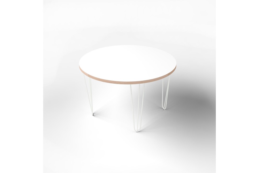 Стіл круглий з покриттям hpl-пластику та білими металевими ніжками , виробництво фабрики IndigoWood, Україна м.Київ.
