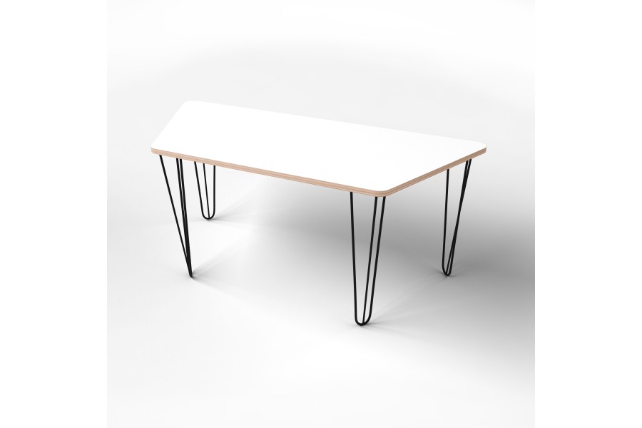 • Стіл трапеція з покриттям hpl-пластику та чорними металевими ніжками
